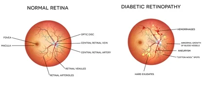 Diabetic retinopathy (die-uh-BET-ik ret-ih-NOP-uh-thee) is a diabetes complication that affects eyes. It’s caused by damage to the blood vessels of the light-sensitive tissue at the back of the eye (retina).